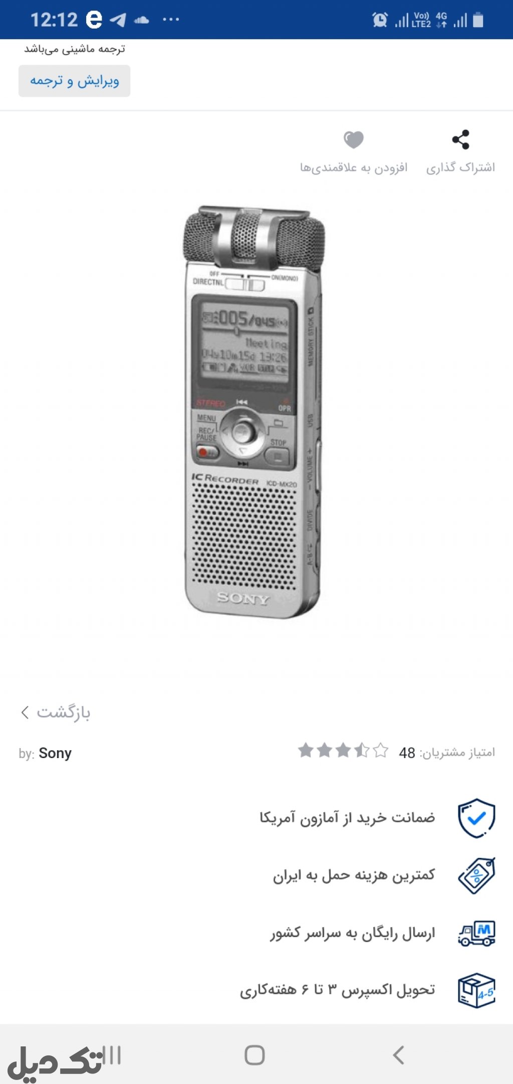 حداکثر 45 ساعت و 30 دقیقه ضبط صدا در حالت LP
